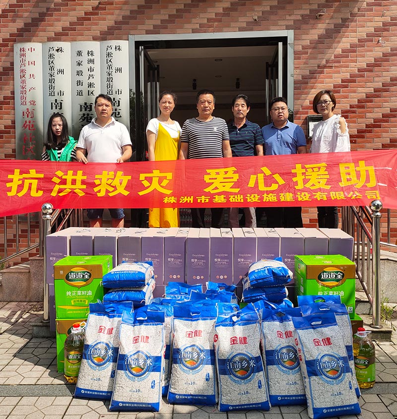 受洪水影響,楓溪港水位上漲,株洲蘆淞區(qū)董家塅街道南苑社區(qū)居民樓一樓住房被洪水灌涌,26戶一樓住戶家進(jìn)水,水淹到窗臺(tái)位置,住房轉(zhuǎn)移前來不及轉(zhuǎn)移屋內(nèi)物品。我司得知此情況后,組織人力物力,7月16日上午將被子、大米、食用油等救援物資及5200元捐款送到蘆淞區(qū)董家塅街道南苑社區(qū)居委會(huì),為受災(zāi)居民獻(xiàn)出一份愛心。